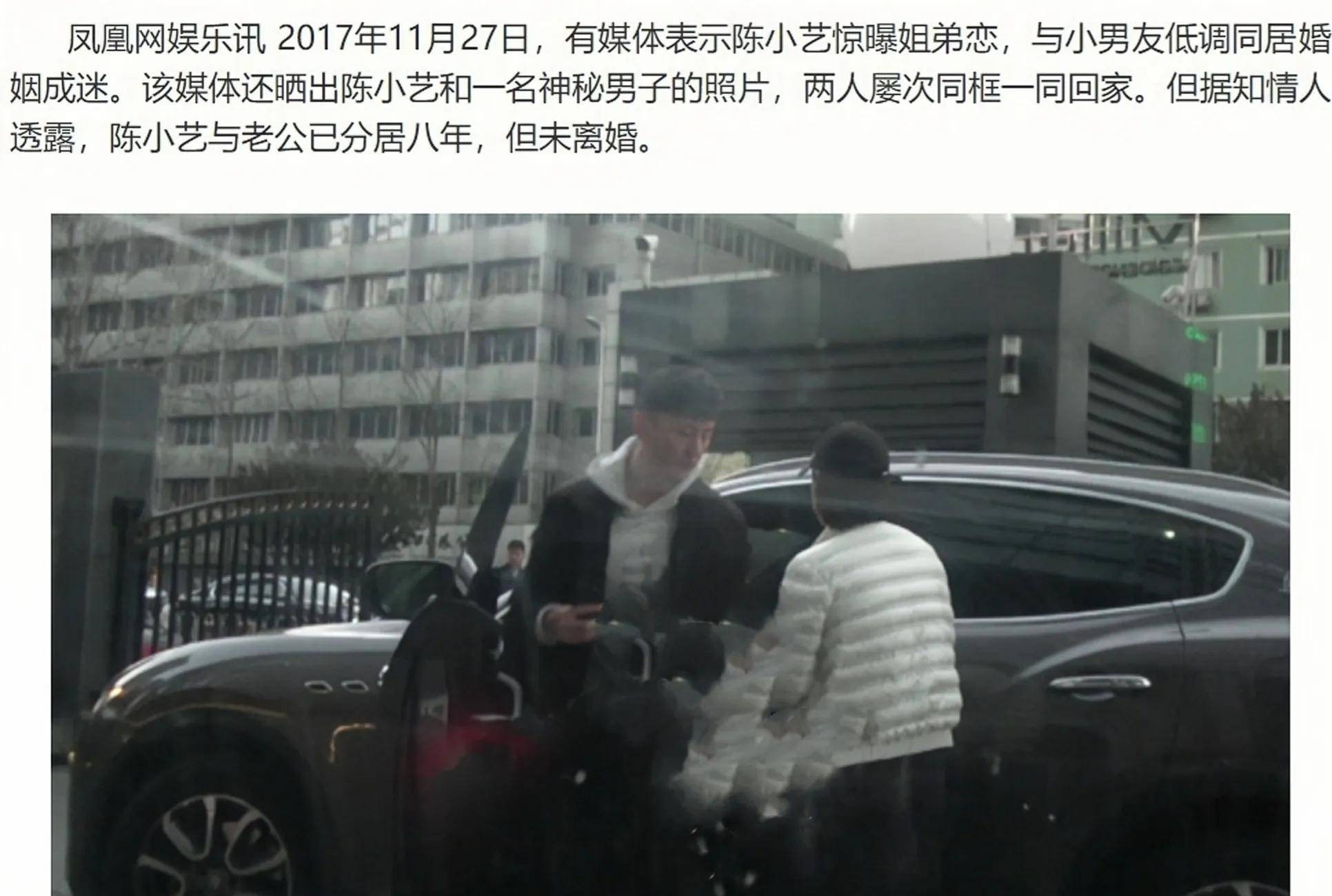 那年7月,一张照片在网上流传开来,照片中陈小艺被拍到与一名叫徐昂的年轻导演在车内激吻,动作十分亲密。