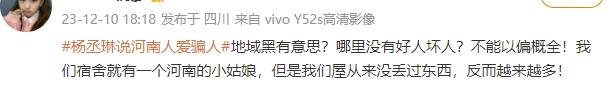 没过多久,# 杨丞琳说河南人爱骗人 #这个词条就爆上了热搜。