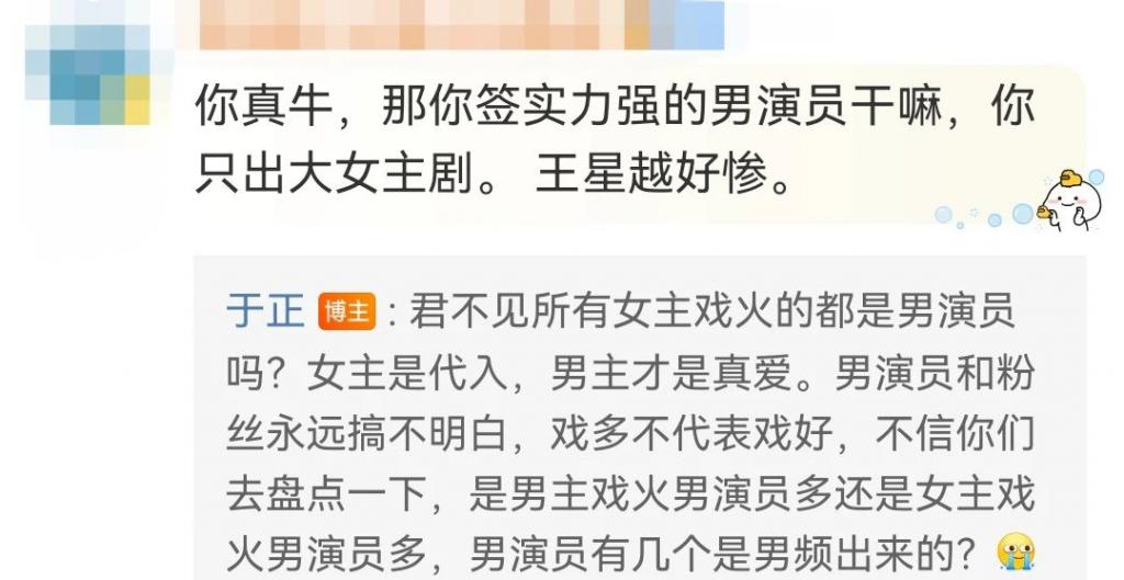 甚至,就连于正被质疑为何签男演员却总搞大女主剧的回答也是: