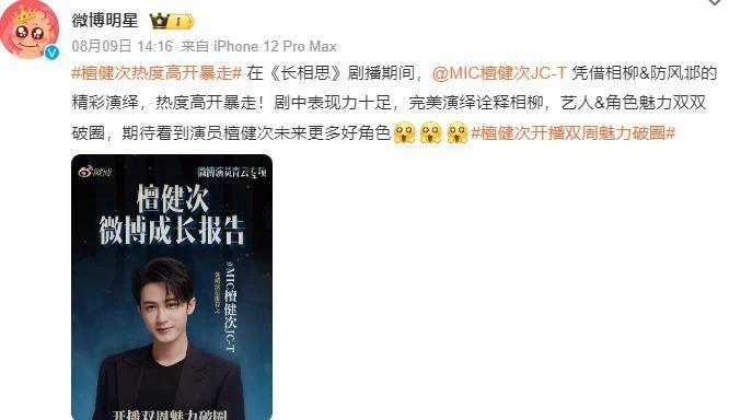 他靠《长相思》再次翻红,微博涨粉 200 多万,相关话题更是高达 170 多亿。