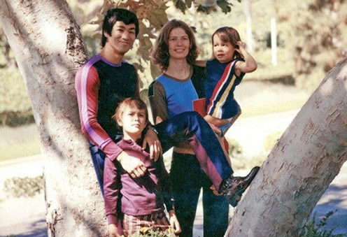 琳达·艾米莉和李小龙彩色温馨家庭照