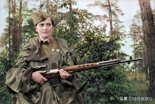 1941年,苏军女战士柳德米拉.帕夫柳琴科在保卫斯大林格勒战役中,自己的步枪在山顶上狙杀了309名德军士兵,一举成名,创造了别人无法企及的辉煌战绩。从此,帕夫柳琴科成为全苏联人民心中的英雄。1945年,她荣获苏联最高勋章金星勋章并获得苏联英雄头衔。
