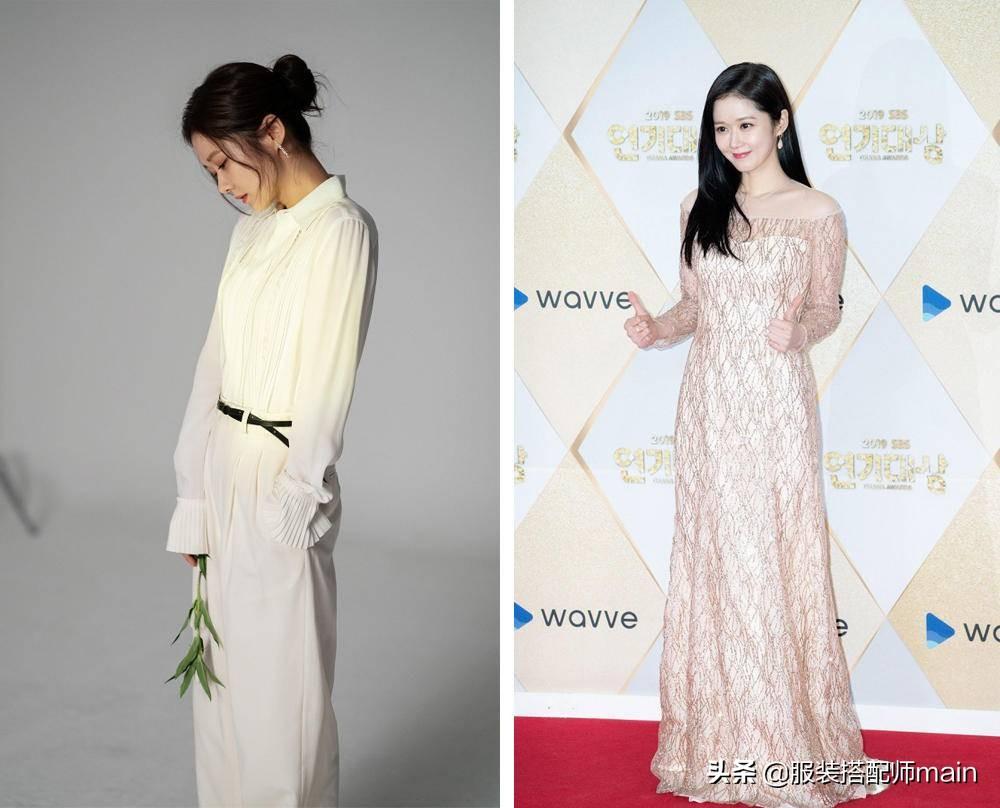 换上柔顺的连衣裙,浅色自带反光板效果,把皮肤衬得白皙透亮。垂坠的裙摆轻轻拖在地上,修身的版型勾勒出苗条好身段,侧脸轮廓清晰,锁骨线条优秀,身材都很是能打。