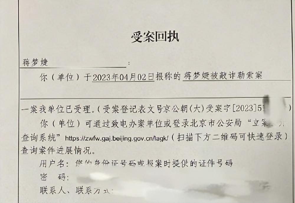 面对这种情况,蒋梦婕决定报警,前往派出所将相关证据交给警察,随后得知威胁、勒索她的犯罪嫌疑人在异地被控制的消息,并表示有相关判决也会及时通知蒋梦婕。