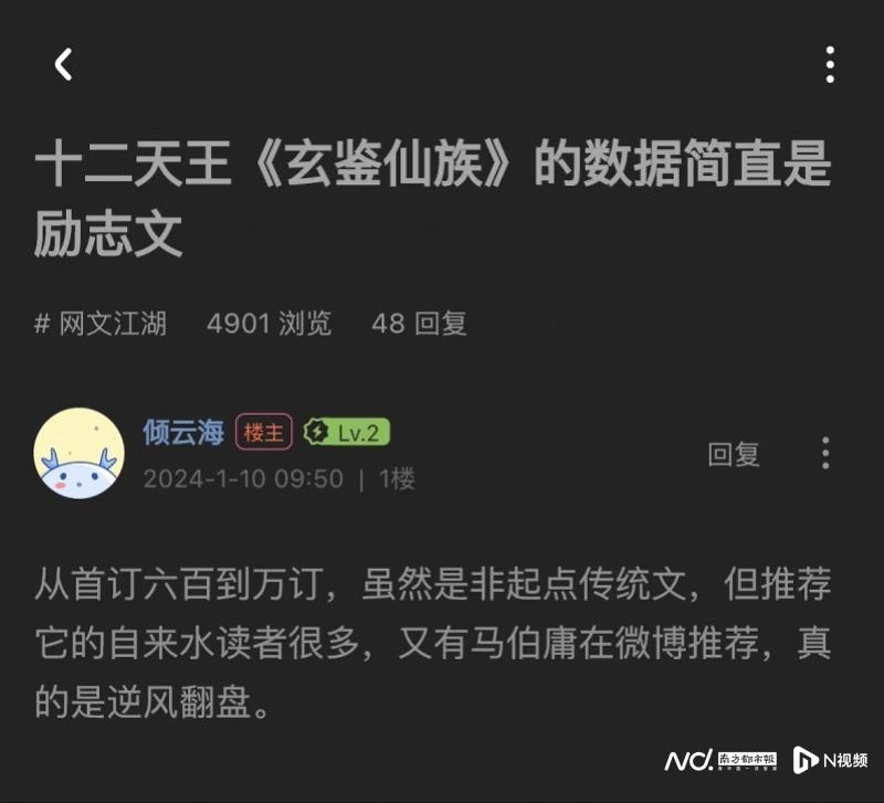 业内人士认为,主线人物频繁迭代,这种类似《冰与火之歌》的写法让《玄鉴仙族》并不是起点最典型的作品,而他仍能收获起点“十二天王”的称号并获得不错的成绩,体现了网络文学平台土壤的包容性及00后作家引领的创新氛围。