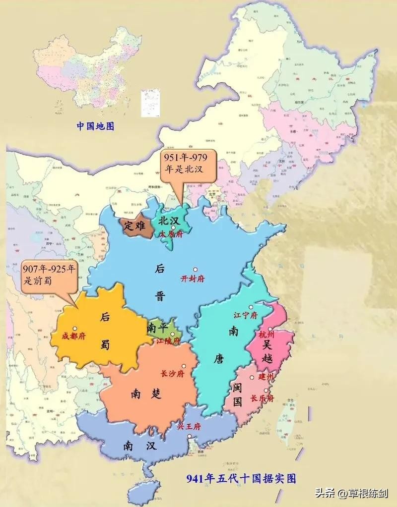 五代十国(907年—979年):中国历史上的一段大分裂时期,也是唐末藩镇割据的延续,这一称谓出自《新五代史》,是对五代(907年—960年)与十国(902年—979年 )的合称。