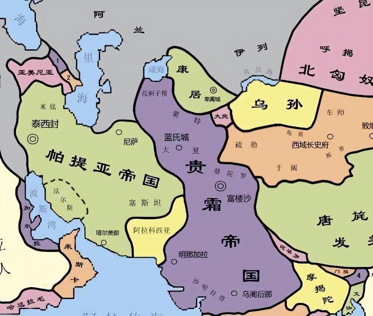 大月氏人先后打败了希腊人、塞人,安息人,控制了整个阿姆河、锡尔河流域,建立了贵霜帝国。
