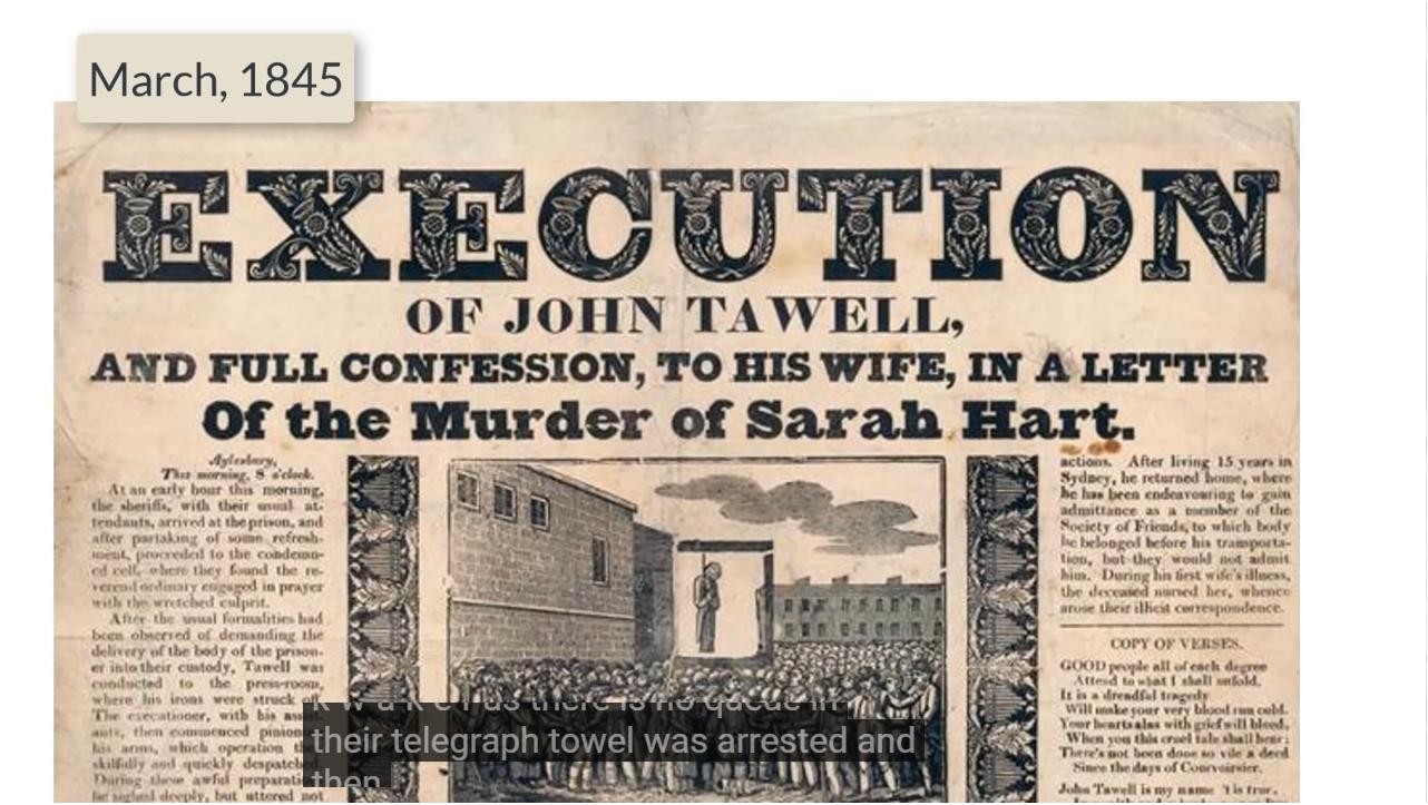 在1845年1月,距离惠斯通上次著名的讲座过去了一年半,一个贵格会教徒、名叫约翰·塔维尔杀害了他的情人。人们发现他购买了前往伦敦的火车票。于是警察使用新建成的库克-惠斯通电报系统发送信息来提醒警察去抓捕他。有趣的是当时这封电报中,Quaker,被拼写成 Kwaker。塔维尔被抓获,三月份被公开绞死。这是人类第一次通过电报来抓捕杀人犯。使得所有人都对电报用途感非常兴趣,查尔斯·惠斯通的名气一飞冲天。
