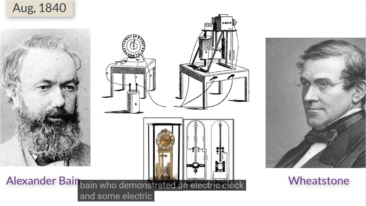 一位年轻钟表匠,名叫贝恩的人拜访了惠斯通,他给惠斯通展示了电子钟以及电报设备,这个电报设备可以将信号直接打印出来。惠斯通当时答应购买他的设备。但说他的电子钟没有什么用途。但三个月后惠斯通发表了一篇电子钟的论文并停止支付电报设备的费用,为此贝恩进行了极力抗争,知道1834年贝恩的朋友出版了一本书,介绍贝恩是如何发明了这些设备的,这就使得惠斯顿陷入了争论的漩涡。
