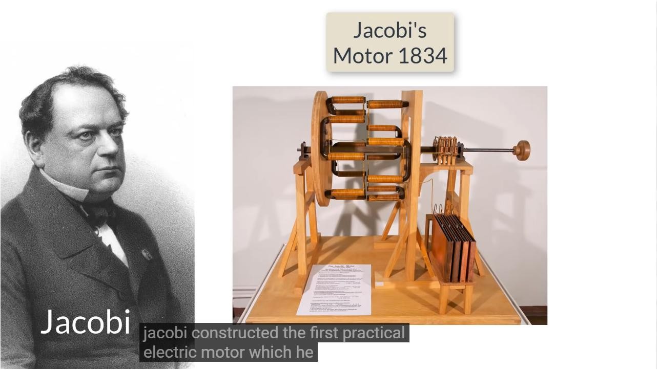 直到1838年9月雅克比的电动机一直是世界上功率最大的电动机,之后雅克比又设计了更好的一个电动机。到了1840年左右另外一个人加入使得情况发生了改变。