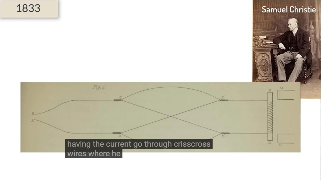 克里斯蒂设想将铜丝和铁丝电流保持平衡。于是他减少了铜丝的匝数,增加了铁丝的匝数。他想得到线圈的长度与输出电流值间的关系。注意此时他还不太了解欧姆定律。所以他使用了一种材料来检测感应电流,使得输出电流通过一个十字交叉连接电路。他通过改变连接铁线的厚度和长度,来与铜线进行匹配。通过电桥与另外一个电线相连,然后通过调整铁丝使得电桥输出为0。这是惠斯顿电桥的第一个应用实例。