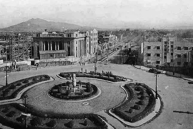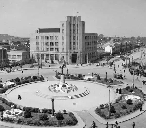 1943年前后的新街口,后面的高层建筑就是现在的东方福来德。
