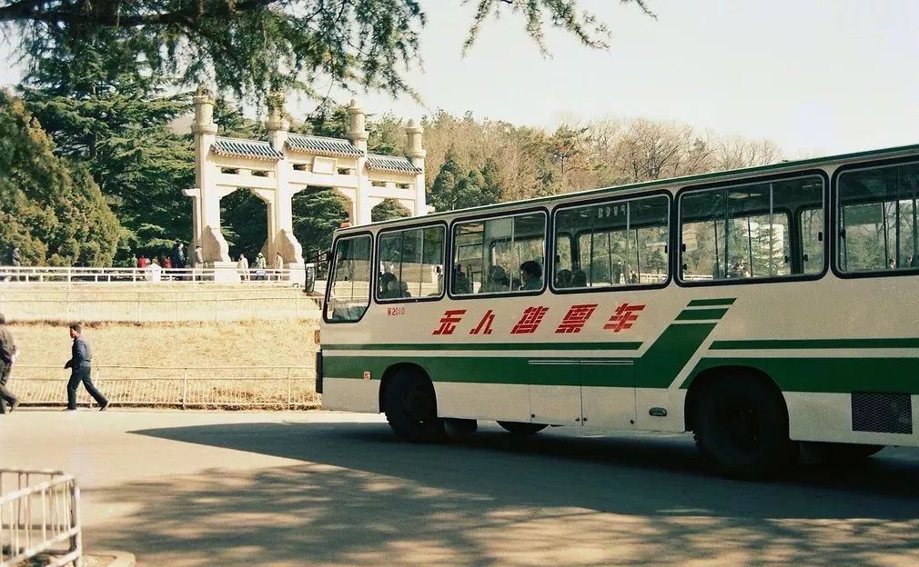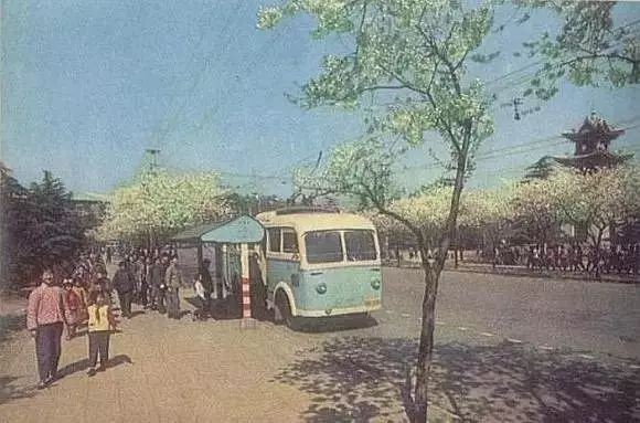 1984年,樱花烂漫的鸡鸣寺路,小面包造型的公交车很可爱。