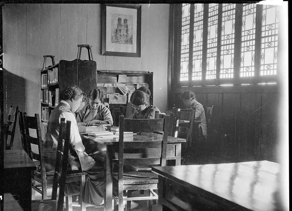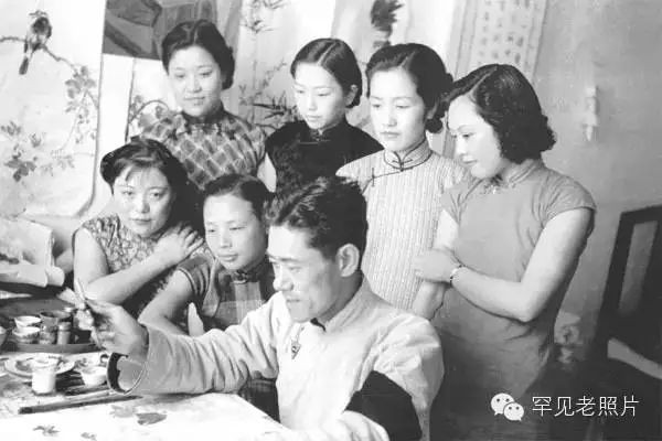 1936年,南京中央大学美术教授张书旂的女弟子在观看他作画。
