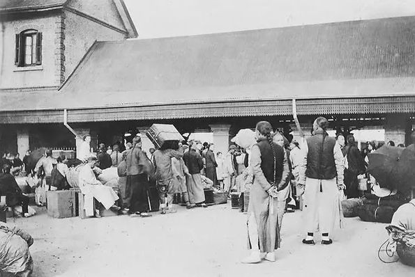 1912年,南京火车站。小小的火车站外聚集了来自四面八方的游客。