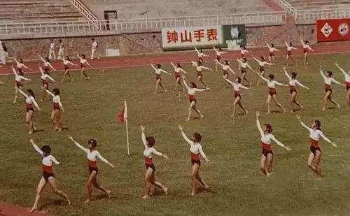 1980年代的五台山体育馆,女学生们在做体操运动。