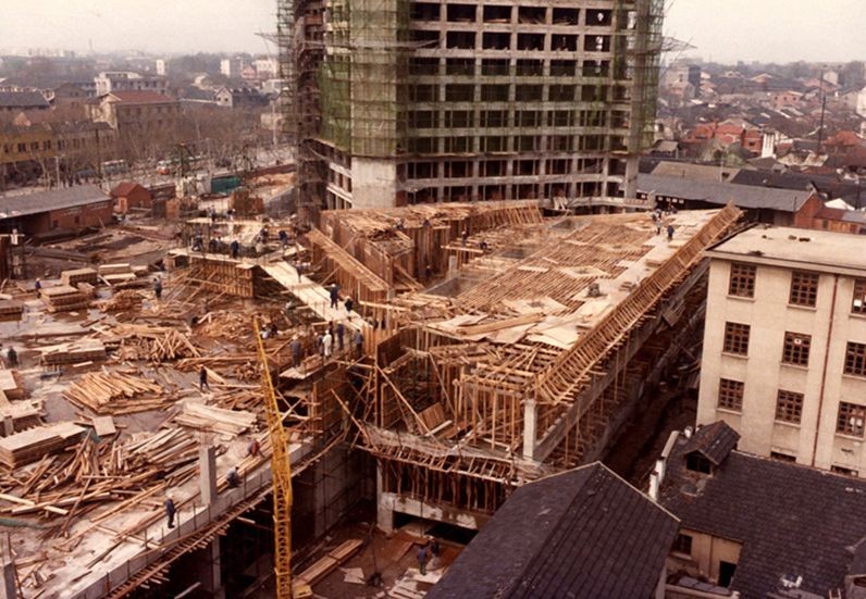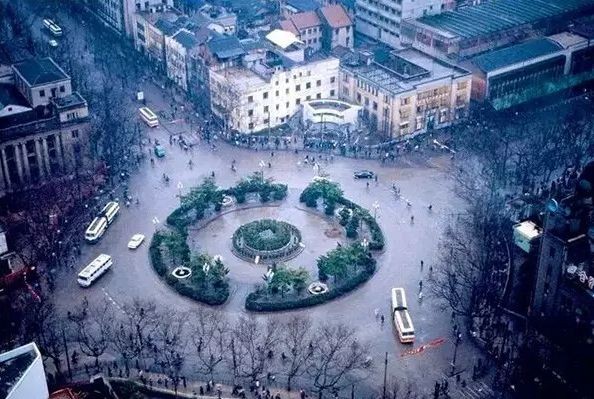 1950年代末,南京新街口西南角还是中国人民银行,如今老建筑已不见踪影,取而代之的是南京国际金融中心。