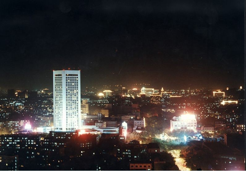 1990年,新街口的夜晚,灯火通明,美不胜收。