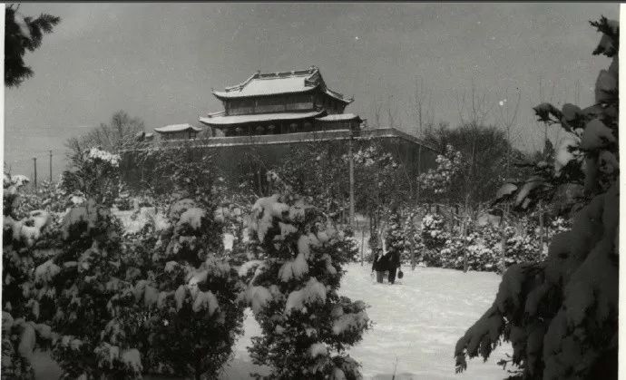冬天,满城飞雪,鼓楼的屋檐上也积了厚厚的一层雪。