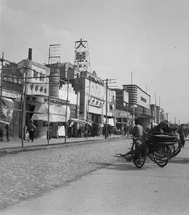 1940年代,南京大华电影院。当时这里是南京城的繁华地段,门外都是等着客人的黄包车。