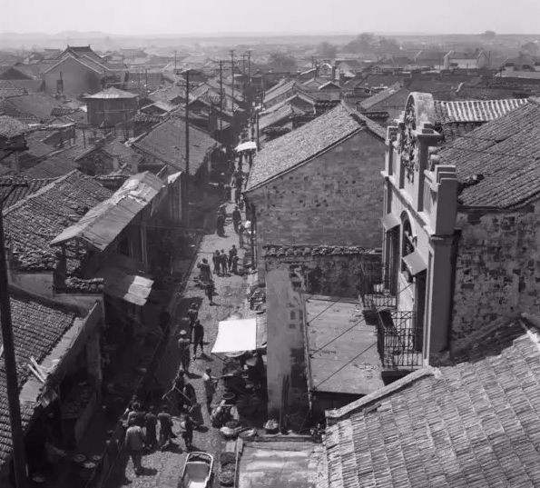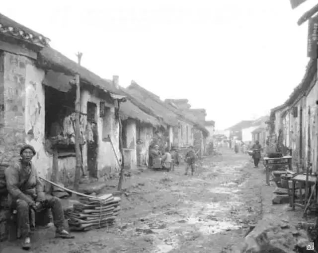 1931年的栖霞山脚下的栖霞镇,一条泥泞的主街,旁边有栖霞寺。
