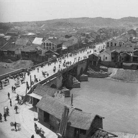 40年代初,中华门外南门外大街长干桥,那时的桥头上热闹无比,不时听见小商户吆喝叫卖的声音。