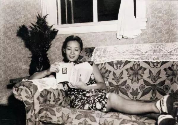 1948年,女子常常穿着旗袍,倚在沙发上静静看书,享受慢时光。