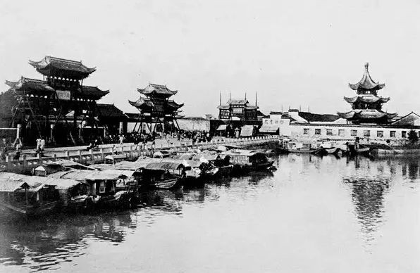 1910年,南京夫子庙还没有密密麻麻的游人,秦淮河上还停靠着一排排的画舫。