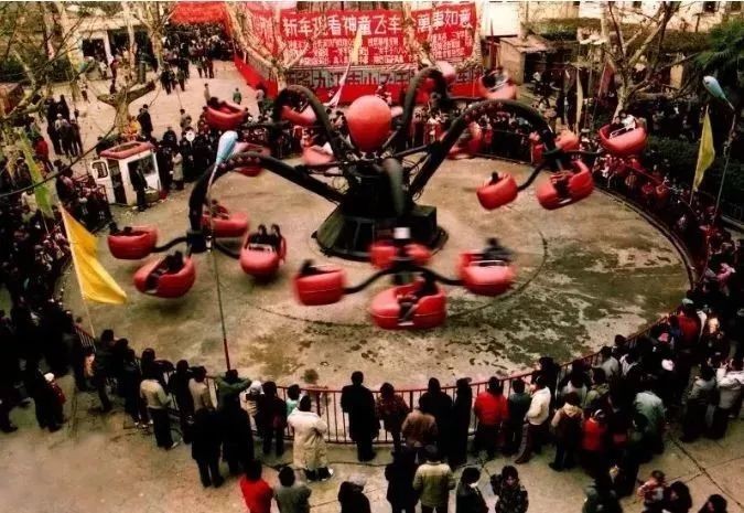 1985年,南京工人文化宫的怪物旋转车,吸引一大批围观群众。