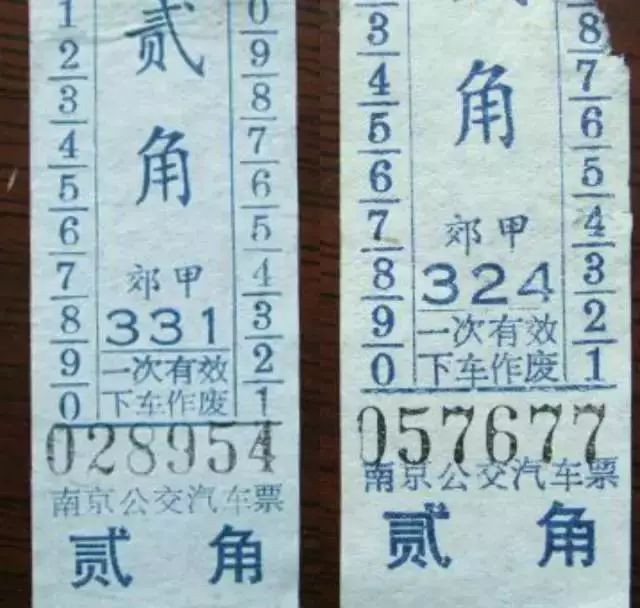 1977年,南京市公交公车票,贰角钱乘一次车。