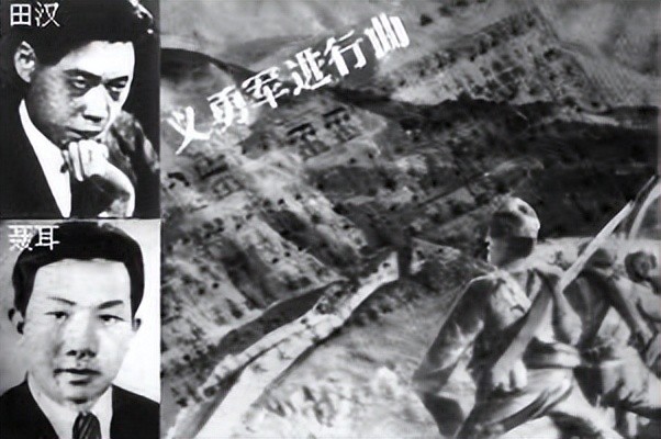 由田汉作词、聂耳谱曲,诞生于抗日战争年代,歌曲内容是号召人民奋起抵抗入侵者。后来成为中华人民共和国国歌。
