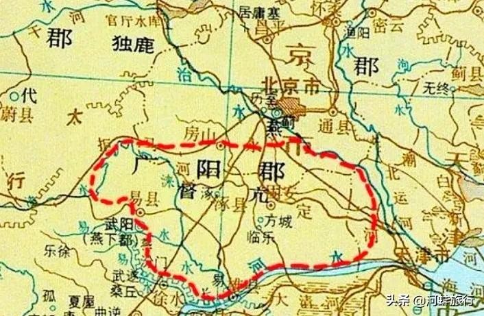 “督”是监管的意思,“亢”古义是脖颈,督亢引申为膏腴之地,位置大抵相当于现在的固安、新城、涿州一带的冲击平原。自战国中期以后,燕国在这里兴修了灌溉水渠——督亢陂,将其改造为重要的产粮区。战国末年,秦国进一步强大起来,于是燕太子丹派遣荆轲前去刺杀秦王,实行斩首行动。《史记·燕召公世家》中记载:“燕见秦且灭六国,秦兵临易水,祸且至燕。太子丹阴养壮士二十人,使荆轲献督亢地图於秦,因袭刺秦王。秦王觉,杀轲,使将军王翦击燕。二十九年,秦攻拔我蓟,燕王亡。”这就是有名的荆轲刺秦王,图穷匕首见中的地图,就是督亢之图。