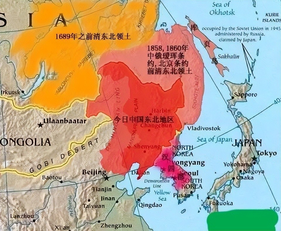 清朝起初忙于关内事务,对沙俄在东北的侵扰应对稍缓。但随着局势严峻,顺治、康熙年间开始组织反击。1652 年,乌扎拉村之战打响,虽清军初战未竟全功,但揭开了反击大幕;1685 年、1686 年的雅克萨之战,清军在康熙指挥下重创沙俄军队。最终,双方于 1689 年签订《尼布楚条约》,以外兴安岭为界划定领土,暂时稳住局势。可 19 世纪中叶,清朝在列强冲击下风雨飘摇,沙俄趁机而动。1858 年《瑷珲条约》签订,黑龙江以北 60 多万平方公里土地被割占;1860 年《北京条约》又使乌苏里江以东 40 多万平方公里土地易主,沙俄在远东的势力范围急剧扩张。
