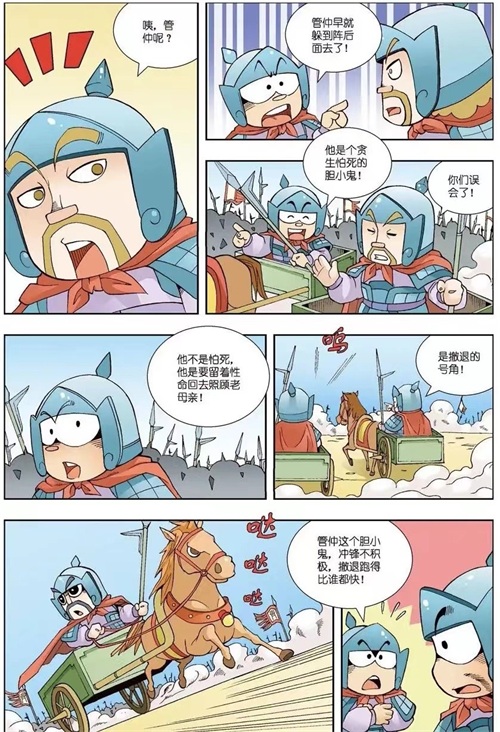 后来,管仲开始找门路,投军,成了名小军官。可是每次一上战场,别的军官都是带头冲锋杀敌,而管仲却躲在队伍的后面,甚至干脆把盾牌一扔,直接临阵脱逃。上司领导也是忍无可忍就把管仲赶出军营,大家都觉得他是贪生怕死之辈。而鲍叔牙却为他开脱,说都误会管仲了,他不是怕死,而是太孝顺,他得留着性命去照顾家里的老母亲。