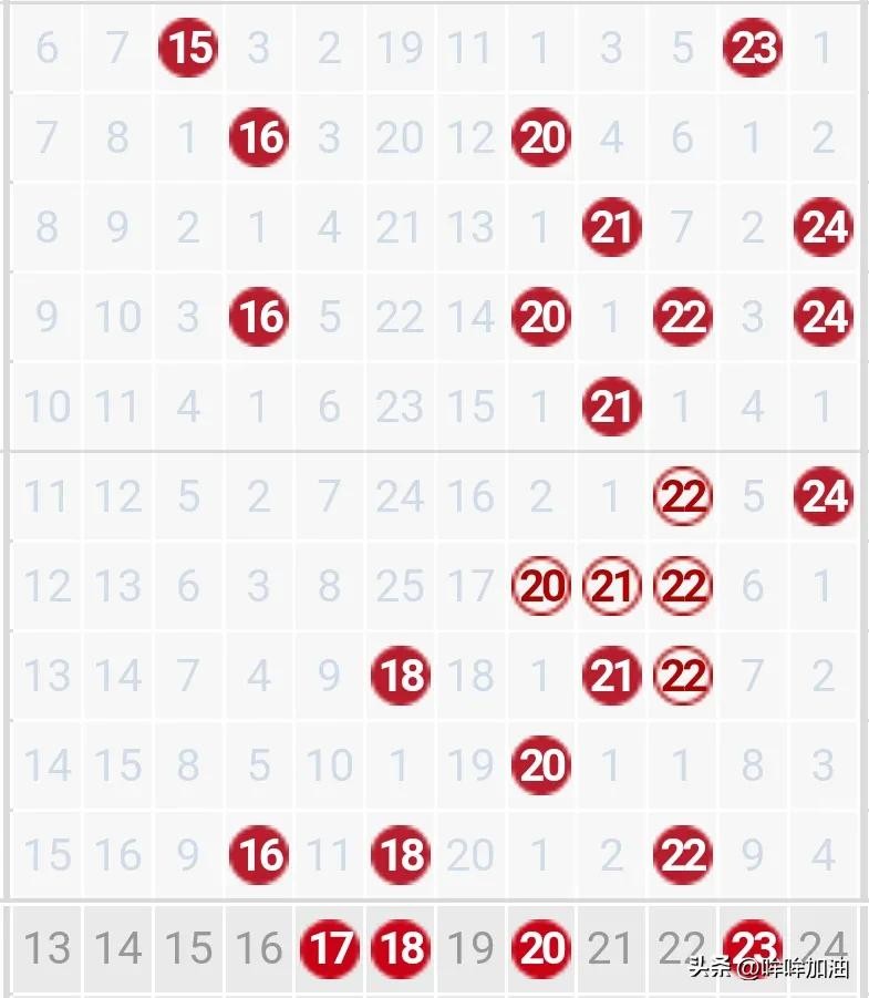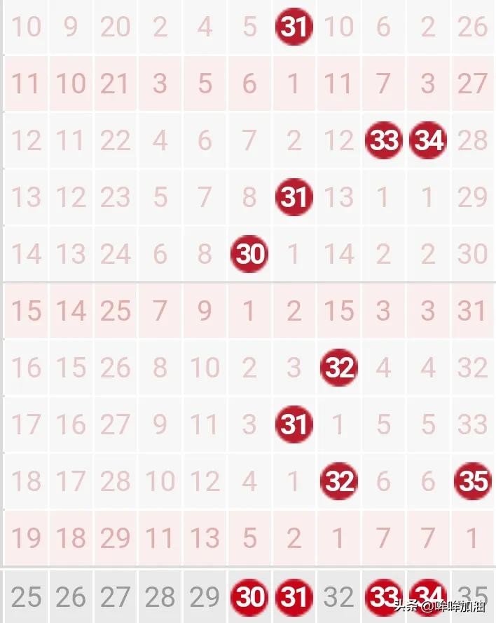 前区开出一组同尾,,区间比为2:3:0,奇偶比为1:4。后区开出两枚邻号,双奇数组合,跨度为2。