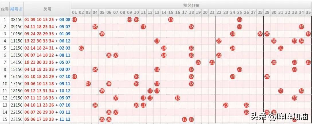 大乐透第24150期:龙头08凤尾33,后区03、12。历史同期走势图表