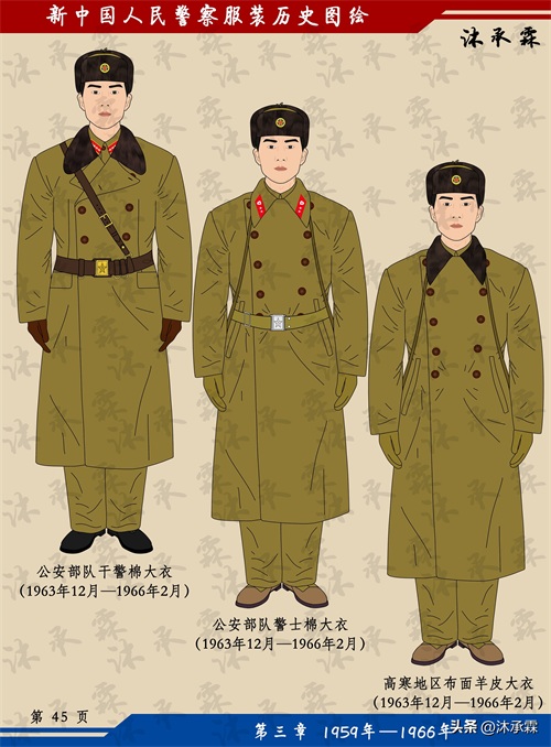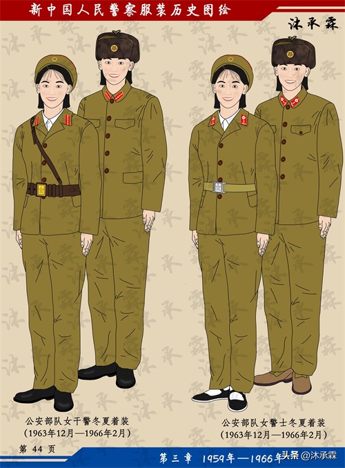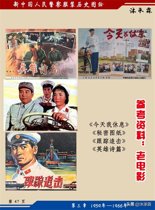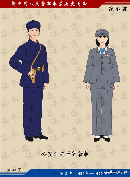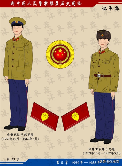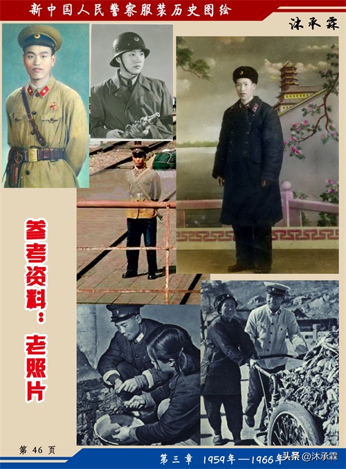1959年5月,公安部下发《关于改进中国人民警察制服问题》的通知,民警服装新制式是在55式警服的基础上进行修改,1959年10月1日开始在全国范围内陆续换发。