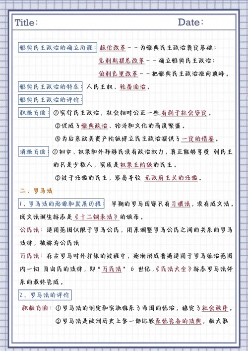 【冲刺建议】建立"时间+事件+影响"三维记忆模型,重点对比郡县制与分封制、雅典民主与罗马法的差异。每天用10分钟绘制思维导图,考前效率提升300%!