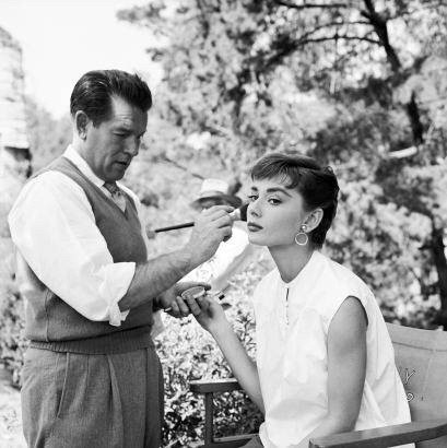 1953年,奥黛丽·赫本私人化妆师Wally Westmore在拍摄电影《Sabrina》期间为赫本补妆