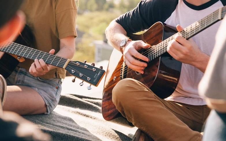 民谣吉他:采用三点持琴法。民谣吉他可自由发挥,如翘二郎腿。