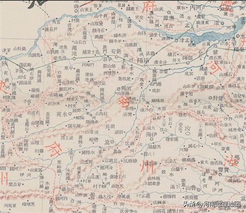 此图出自《大清帝国全图》1905的分省图中。1905年《大清帝国全图》由商务印书馆出版印刷。地图一共有25幅图,1张全图,加24张各省图。河南幅分辨5138 x 7225,大小16.5M,大图获取方式见文末。