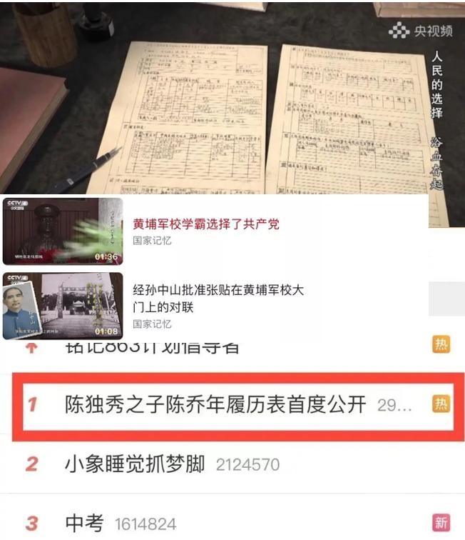 #陈独秀之子陈乔年履历表首度公开#由于《觉醒年代》的热播最受人关注,相关话题阅读量高达5.7亿,微博网友纷纷评论“让我们的子孙后代享受前人披荆斩棘的幸福吧……鼻酸,我们很幸福,感恩。”
