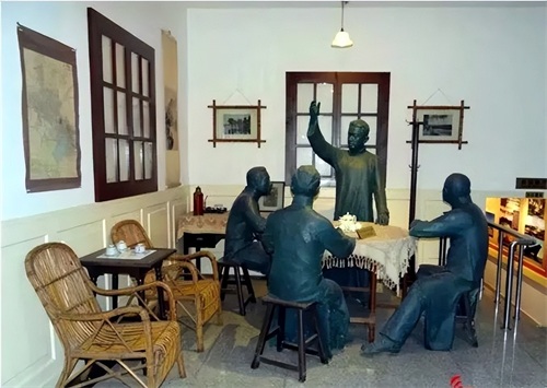 中共天津历史纪念馆中共天津地方执行委员会成立大会的场景复原。举起手臂的是中共北京区委领导人赵世炎。坐在他对面的是这次成立大会选举出的委员长于方舟,坐在两侧的分别是组织部主任江浩和宣传部主任李锡九。中共天津地方执行委员会的成立,标志着在中国共产党领导下,天津第一个正式党组织和领导机构的诞生,使天津的革命形势掀起了前所未有的高潮。