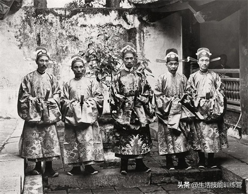 1926 年,越南河内文庙的五位身着正装的官员