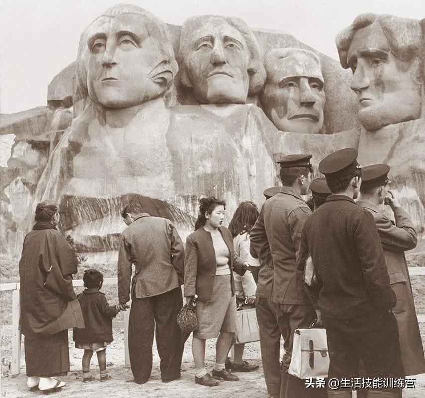 1950 年:美国占领日本已进入第五个年头,日本朝日新闻社主办“美国博览会”,让当地人更深入地了解美国生活方式。博览会展示了拉什莫尔山(除其他外)的大型模型。