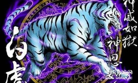白虎代表的是西方七宿,象征的是四象中的少阴,和四季中的秋季,同时它还象征着威武和军队,所有在古代很多兵符都是以虎作为基础的制作的,在易经当中,白虎位是非常重要的方位,一般而言不管什么坐向,左边就是青龙,右边则是白虎。