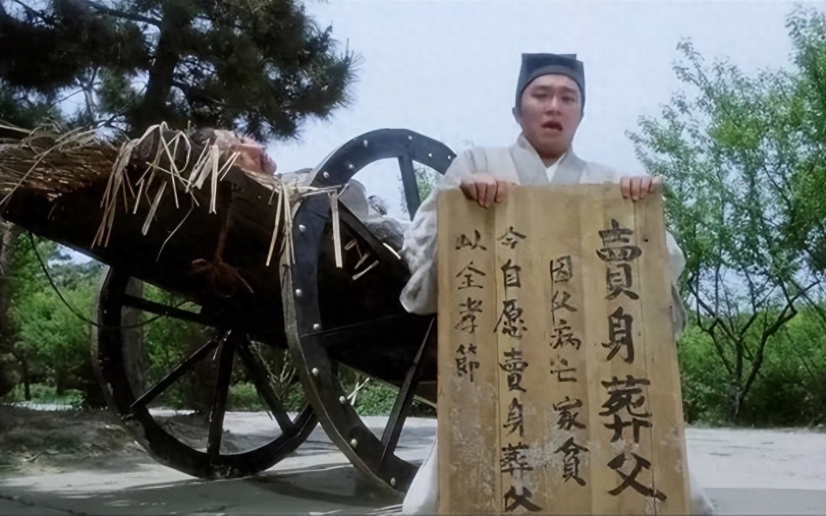 电影中的董永是个孝子,但他家太穷了,父亲去世之后连棺材都买不起。古代讲究丧葬一定要有棺材、一定要入土,不然逝者的灵魂就会得不到安宁。面对这样的困境,董永只能将自己卖给当地的财主,作为父亲的义儿好好照顾父亲的后事,之后董永还去打工赚钱好好地“还”了父亲一把。