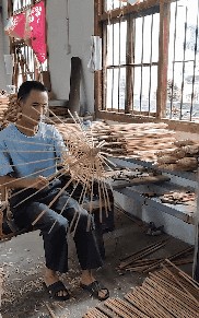 首先是“长伞骨”,为了保证雨伞在使用后能完美地收拢起来,油纸伞的伞骨一定要取自同一根竹筒,在劈好竹条后,要把一端削得细一点,方便后面安装到上伞头上;