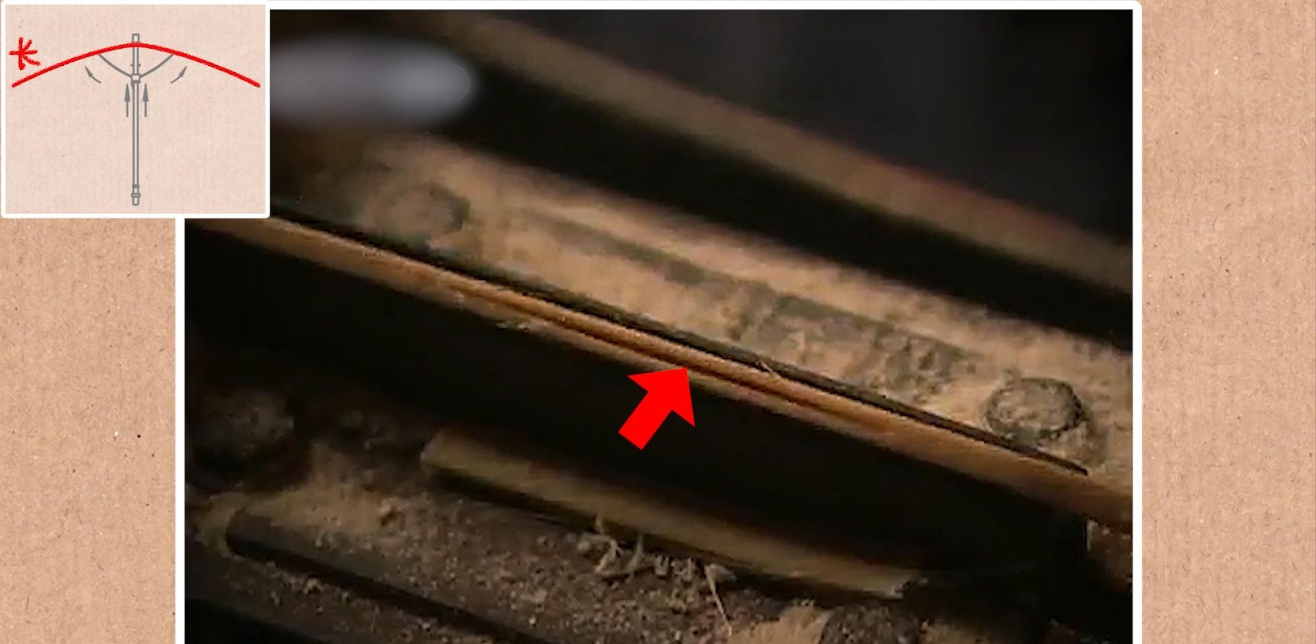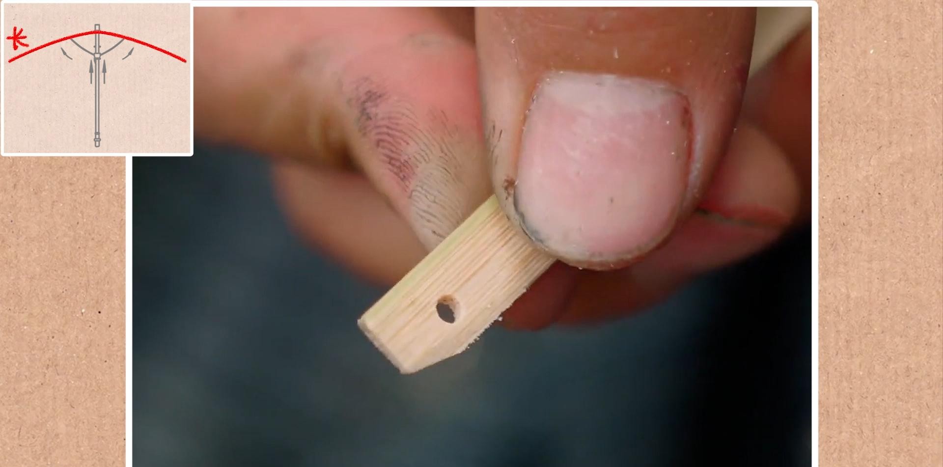 然后,在长伞骨大概二分之一的位置“开槽”!这里是给后面连接短伞骨预留空间;