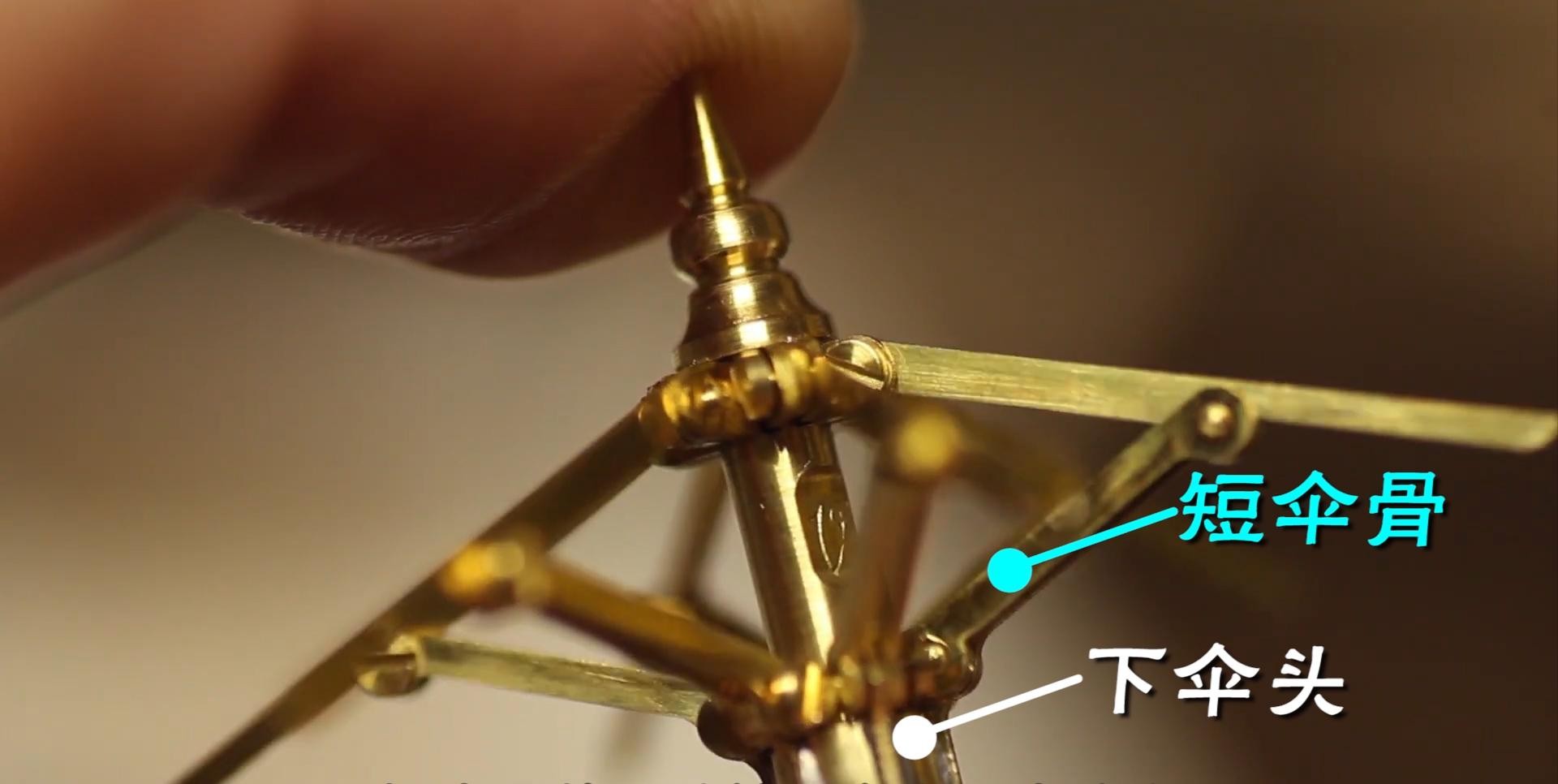 同理,短伞骨与下伞头的连接过程也是如此;